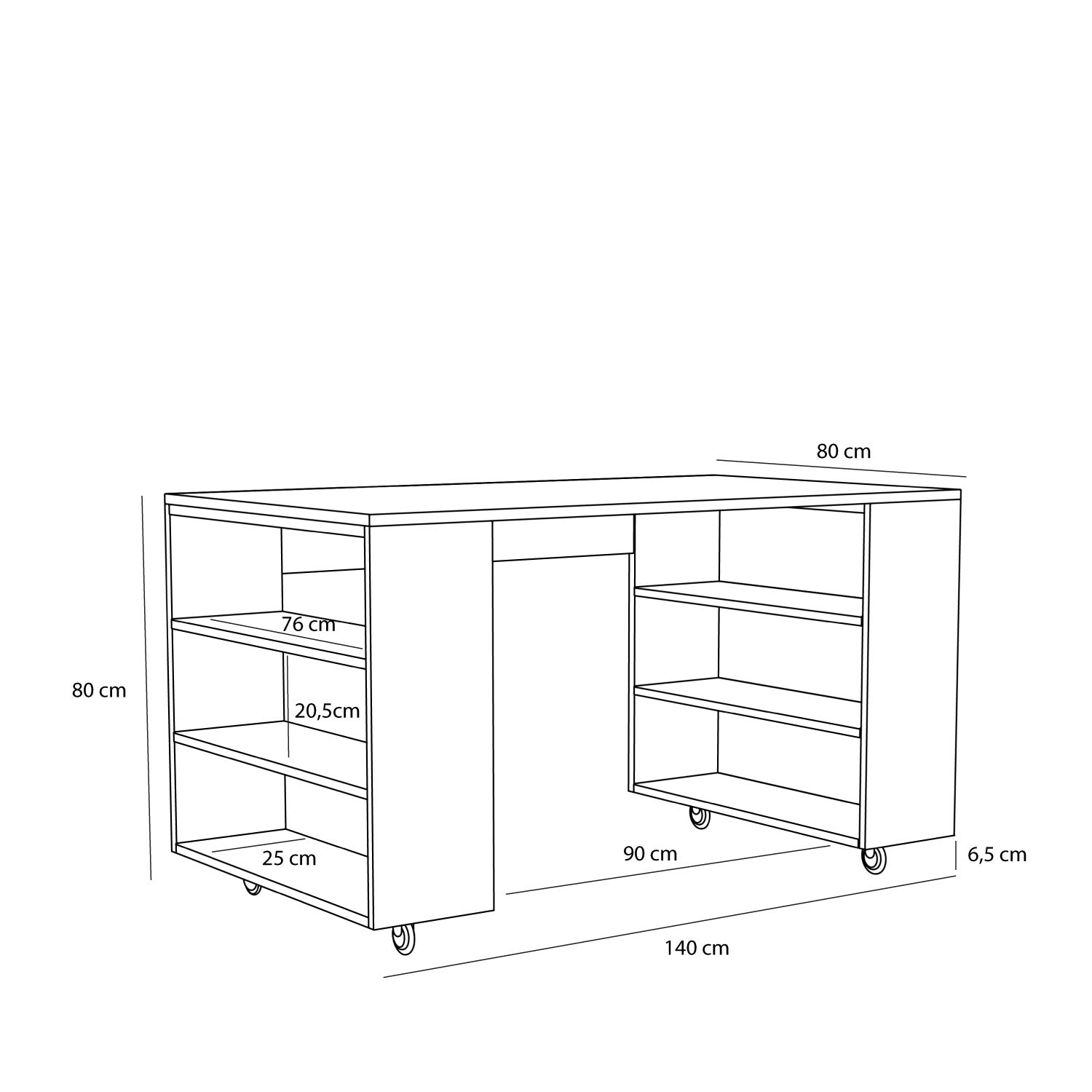 Conçu en MDF avec placage chêne certifié FSC, il associe esthétique et responsabilité environnementale. Fonctionnalités principales : étagères intégrées et rangement discret sous le plateau pour garder vos documents et outils à portée de main ; roulettes pour une mobilité aisée et une réorganisation rapide de l’espace ; fabrication artisanale garantissant une finition soignée.