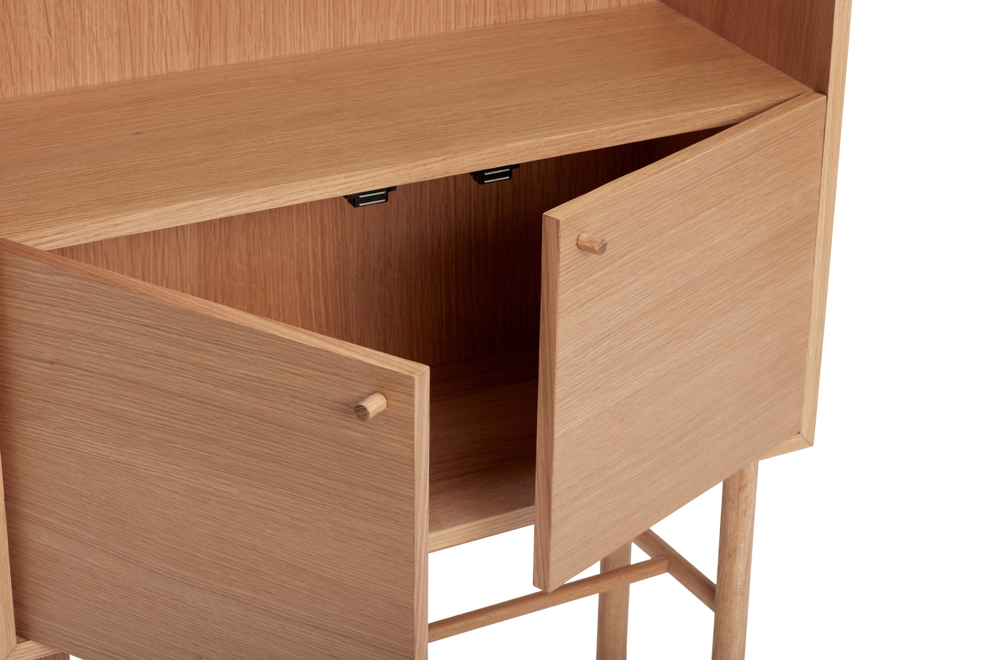 Colonne de rangement au design épuré, associant MDF, placage en chêne et éléments en chêne massif pour une esthétique naturelle et une finition soignée.