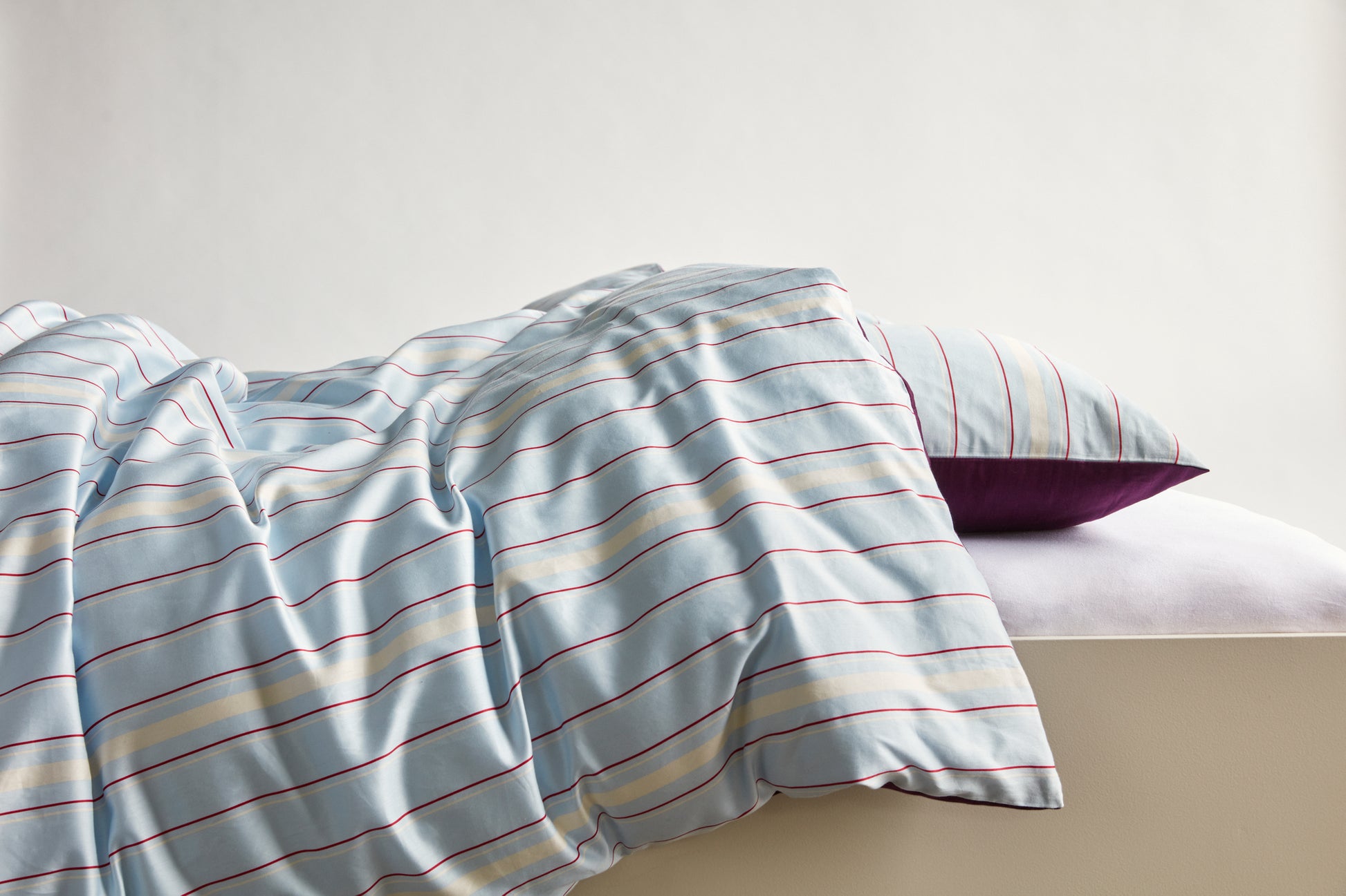 Draps en coton satiné à rayures, conçus pour apporter une touche contemporaine et élégante à toute chambre. Le tissage satin confère au tissu un toucher lisse et soyeux, alliant confort et tenue pour un usage quotidien raffiné.